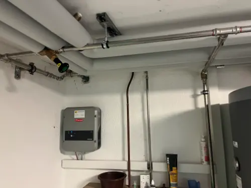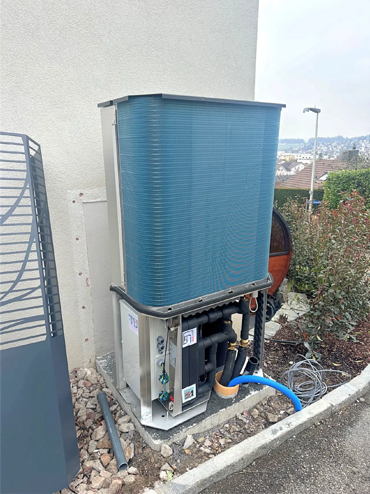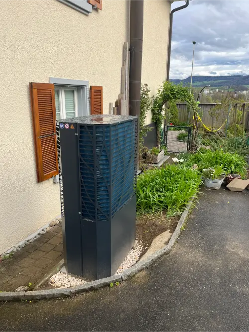 Die Luft/Wasser-Wärmepumpe nutzt die Umgebungsluft als Wärmequelle und gibt die gewonnene Wärme an ein Wasser- oder Heizungssystem ab. Die Wärmepumpe kann sowohl innerhalb als auch ausserhalb des Gebäudes installiert werden. Da sie mit Strom betrieben wird, ist die Kombination mit einer Photovoltaikanlage besonders interessant.